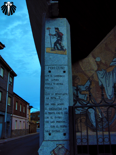 Com um novo souvenir, o peregrino segue adiante em direção a El Ganso, que conta com albergue e bares, pela estrada paralela a carretera local.
