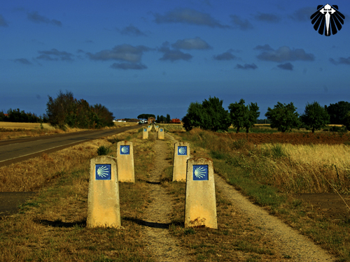 Duplas de pilares com a vieira jacobina, foram colocadas ao longo da estrada e serão companheiras de viagem por quase todo o percurso.