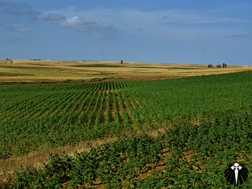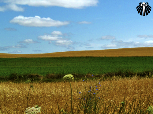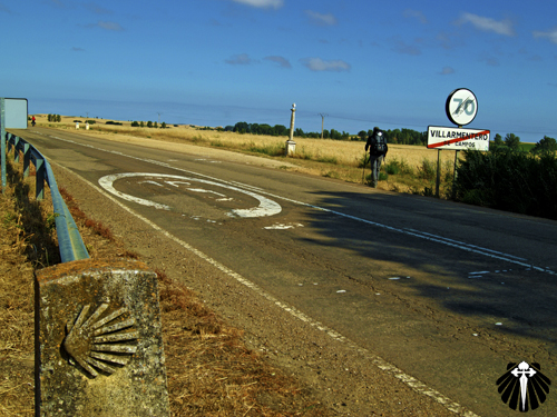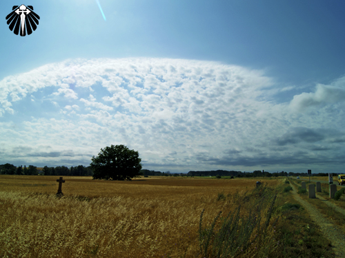 Assim a etapa vai chegando rapidamente ao seu final. Com a paisagem contínua e repetitiva da carretera, só sendo modificada com o surgimento de algum cruzeiro jacobino ou rotonda (rotatória) na estrada indicando a entrada dos vilarejos.