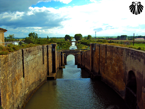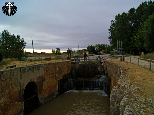 Ao chegar no sistema de enclusas, que permitiam que um barco passasse de um lado para o outro do rio, com desnível de 14 metros, entramos no vilarejo de Frómista.