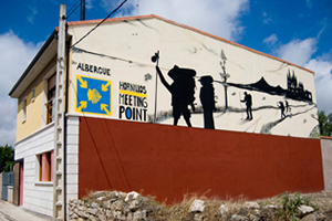 Passeando pela rua principal do vilarejo, pode ser que reconheça o painel impressionante, disposto no 1° piso do albergue municipal de Burgos.