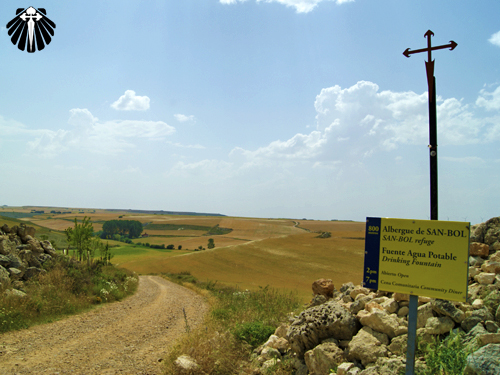 Após 5 quilômetros de Hornillos, o peregrino se depara com uma cruz de Santiago e a indicação do albergue de San-Bol.