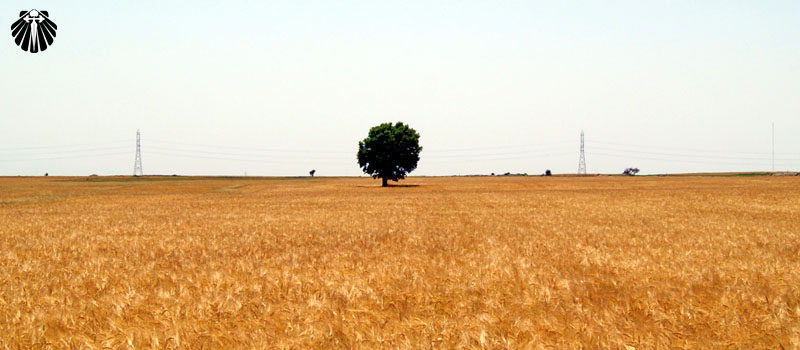 Ao retornar ao Caminho Francês, o peregrino se depara com a mesma paisagem anterior a Hornillos del Camino, a interminável plantação de cereais.