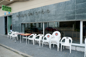 Chegando no alto do Poio, o peregrino encontra albergue e bar, um convite ao descanso.