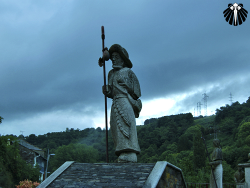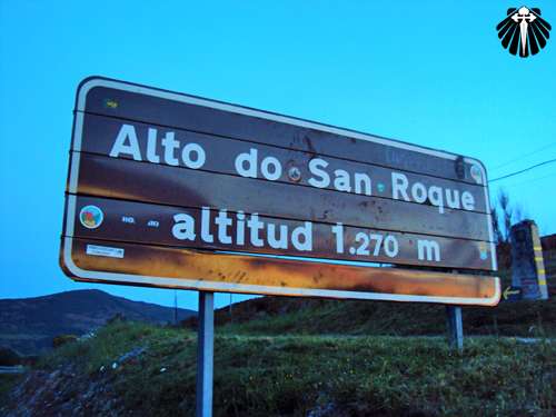 Chegando no Alto de San Roque, a 1.270 metros de altitude, encontra-se uma escultura em bronze de um peregrino, avançando em meio ao vento forte muito comum nesse trecho, seguindo em direção à Catedral de Santiago.