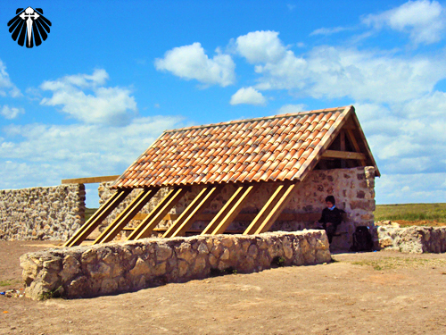 Finalmente, após quatro quilômetros encontra-se um oásis no deserto da meseta. Uma pequena área de descanso com fonte de água potável disponível.