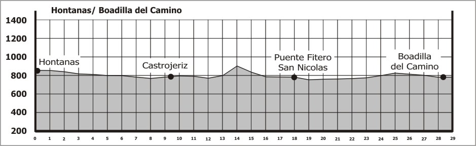 O Caminho de Santiago segue a meseta em direção a Castrojeriz, em seguida a Puente Fitero, adentrando a região de Palência e finalizar a etapa em Boadilla del Camino.