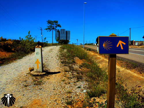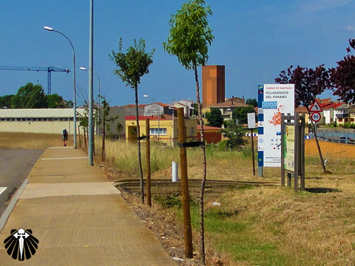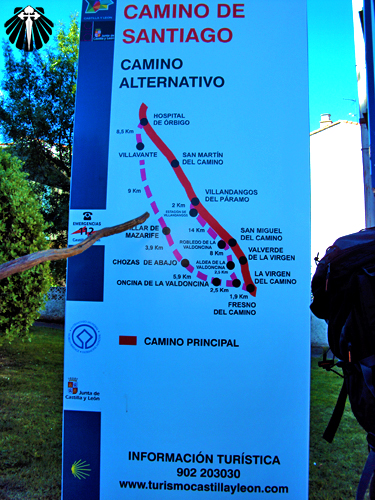 Na saída do povoado, uma placa informativa indica dois Caminhos alternativos, um até Villadangos e outro até Hospital de Órbigo.