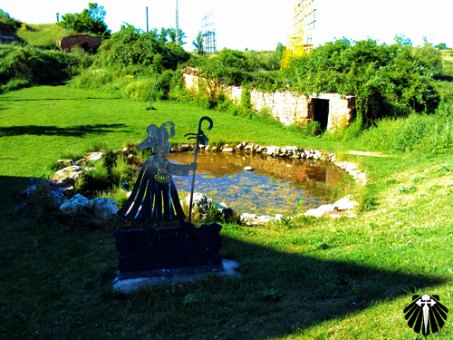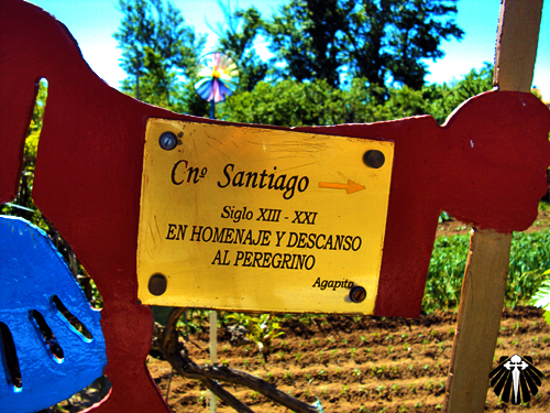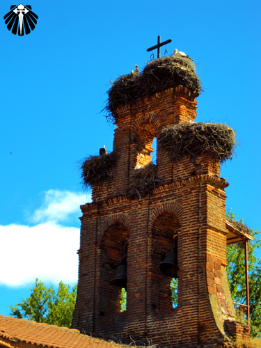 Uma pequena igreja com uma estátua de ferro que lembra São Miguel Arcanjo em sua fachada, quebra um pouco a monotonia da caminhada até Virgen del Camino.