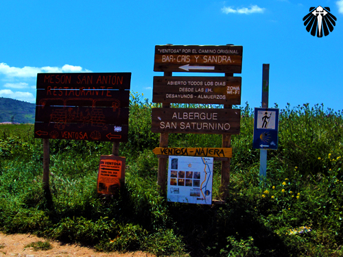 Desvio a esquerda até Sotés onde tem-se opção de hospedagem, farmácia e bar. Ou segue-se reto margeando a carretera em direção a Ventosa, que também dispõe de albergue e bares diversos.
