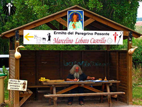 Quando não está peregrinando, monta a sua ermita em algum ponto do Caminho e distribui bastões, frutas e selo nas credenciais dos peregrinos que passam por ali. Uma fonte viva de conhecimento jacobeu.