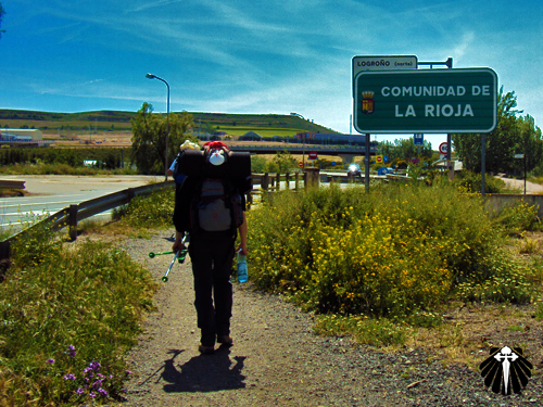 Ao chegar a zona industrial de Logroño, uma placa anuncia que a partir de agora o peregrino caminha em terras da comunidade de La Rioja.