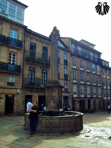 Mais adiante, o peregrino passa pelo monumento aos Reis Católicos que peregrinaram até à Catedral de Santiago.