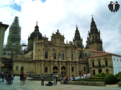 Chegando na praza da Inmaculada, pode-se ver uma das entradas da Catedral de Santiago de Compostela a esquerda e o Seminário Maior de San Martín Pinario a direita.