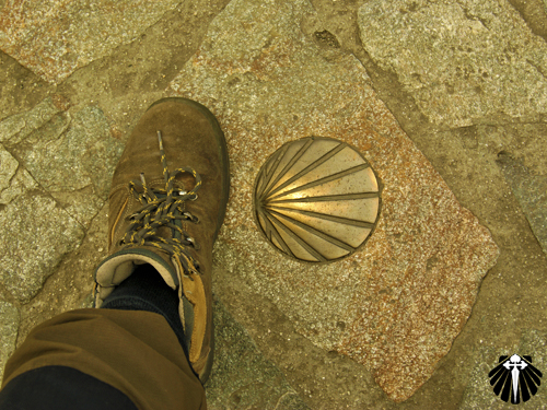Não há necessidade de voltar o caminho para o albergue para seguir caminho, descendo o pequeno monte, encontra-se facilmente a primeira seta amarela do dia em direção à Catedral de Santiago.