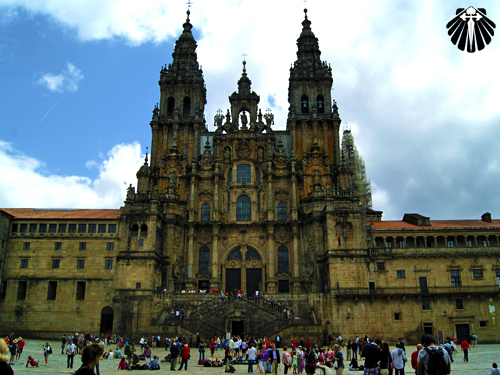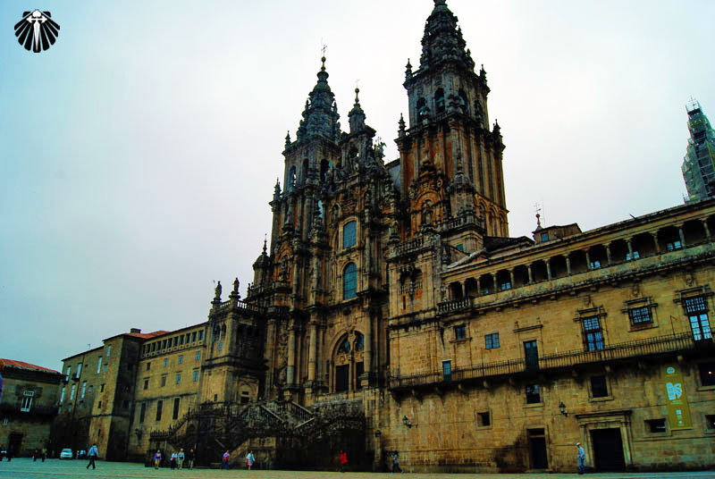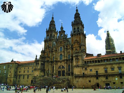 A Catedral se apresenta com toda a sua imponência e com sua bela fachada. Felizes e orgulhosos de terem chegado até ali, muitos peregrinos se emocionam.