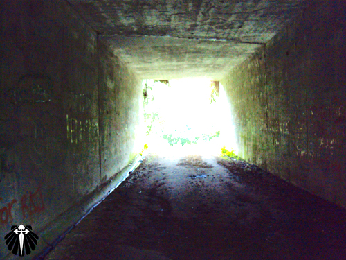Uns metros mais a frente, encontra-se uma fonte de água potável, indicada por uma espada templária.