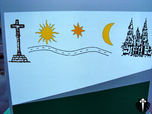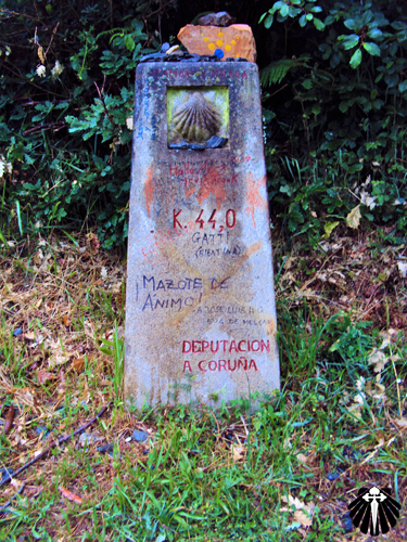 Os marcos de cimento, indicando a distância até Santiago e a aldeia por onde passa o Caminho Francês, vão surgindo a todo instante.