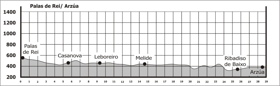 Nesta etapa, o Caminho Francês recebe os peregrinos que percorreram o Caminho Primitivo em Melide e os que percorreram o Caminho do Norte em Arzúa.