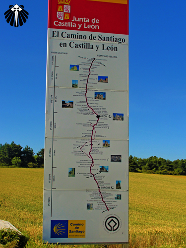 Um imenso painel dá boas vindas e anuncia que a partir daquele ponto o peregrino está chegando a primeira cidade da Comunidade de Castilla y León.