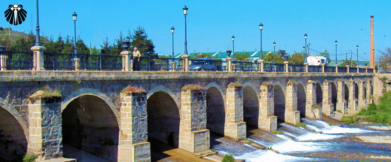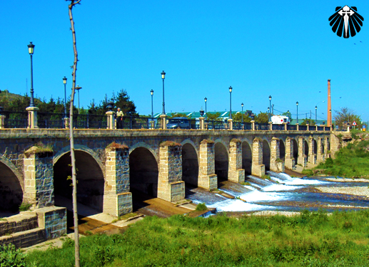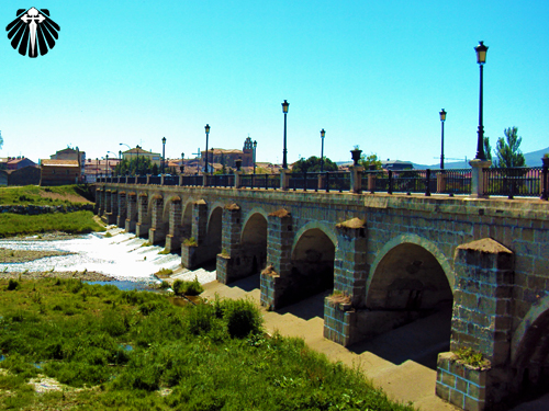 As setas amarelas levam o peregrino a ponte sobre o Rio Oja, com 150 metros e sustentada por 16 arcos, construção original do próprio Santo Domingo.