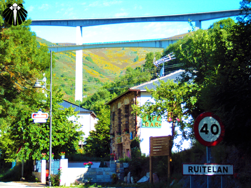 Cruzando o vilarejo de Ruitelán, com a paisagem impressionante de dois viadutos suspensos da carretera nacional, o Caminho atravessa o rio Valcarce por uma pequena ponte de pedra.