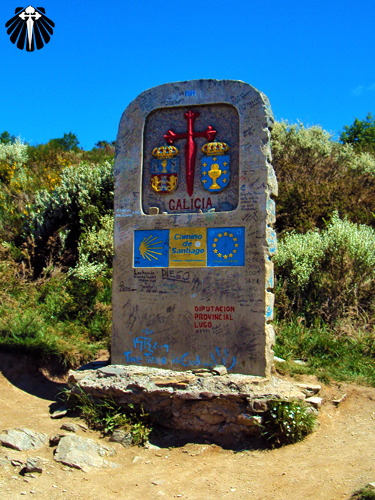 Passando pelo marco jacobeu indicando a distância de 152,5 Kms até Santiago de Compostela, o peregrino vai se despedindo da Comarca de León, onde percorreu mais de 210 Kms do Caminho.