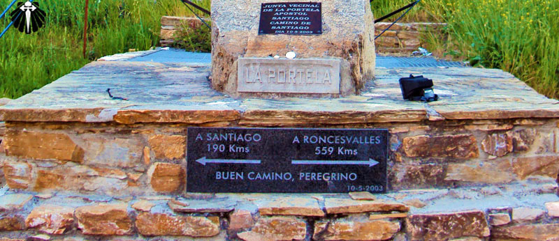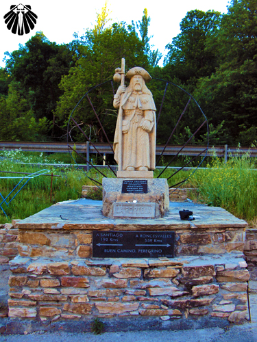 Não muito distante chega-se em La Portela del Valcarce, com albergue, bar e uma estátua de Santiago Peregrino, indicando a distância percorrida até ali e a que falta para chegar a Catedral em Santiago.