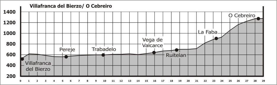 Pereje é o primeiro, com albergue e bar, em seguida o vilarejo de Trabadelo também com albergue e bar.