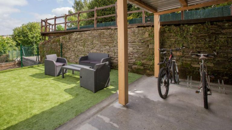 Não muito distante, o peregrino encontra o Albergue Xistral, ao lado do caminho que leva à beira do rio Castromaior. O mais interessante é que, parece que o Caminho do Norte foi ajustado para passar na frente do albergue, visto que logo em seguida o peregrino deverá passar por baixo da A-8, mas isso se deve pela dificuldade de atravessar o Rio.