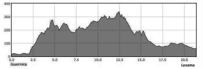 Mas, se você estiver tranquilo, vamos a etapa que mais uma vez segue a rotina de tobogã rompe-pernas. Os primeiros dois quilômetros são planos, corresponde a sair da área urbana de Gernika.