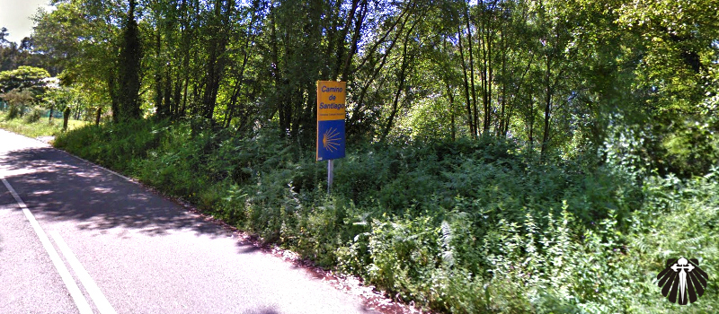 Seguindo adiante, as setas amarelas levam o peregrino em direção córrego Candán, com seus antigos moinhos, onde deve-se subir o canal e em seguida outra um pouco mais para se chegar em Santa Marina.