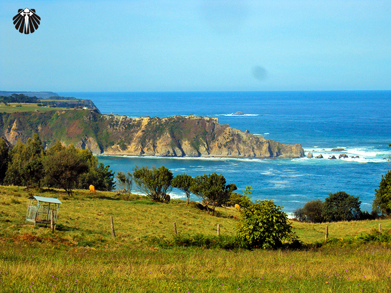 Serpenteando pela N-634, o Caminho do Norte de Santiago de Compostela atravessa o riacho Forcón, passando mais uma vez por baixo da rodovia nacioanl é possível ver ao longe as belas praias da enseada de Canero.