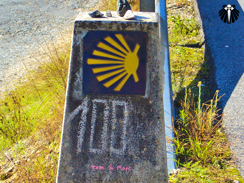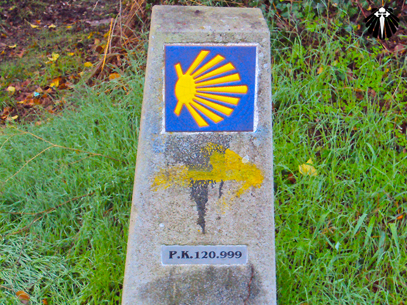 O primeiro "Mojón" com a quilometragem "Oficial" a Santiago de Compostela marca a distância de 120.999 metros até a Catedral, indica ao peregrino para atravessar um rio Madalena, coberto de vegetação para deixar Vilalba.