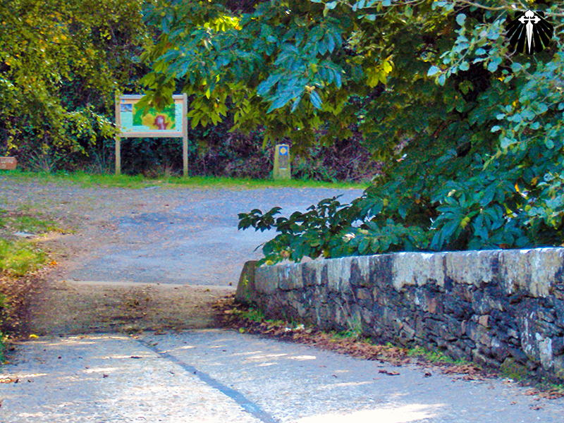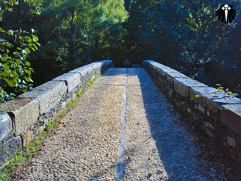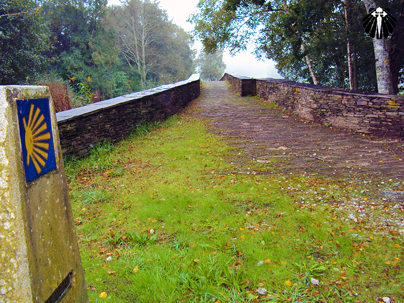 Cerca de um quilômetro mais à frente, iniciando um declive acentuado o peregrino atravessa o Rio Trimaz pela ponte medieval Rodrigues Vilalba, iniciando uma subida até chegar à San Xoan de Alba.