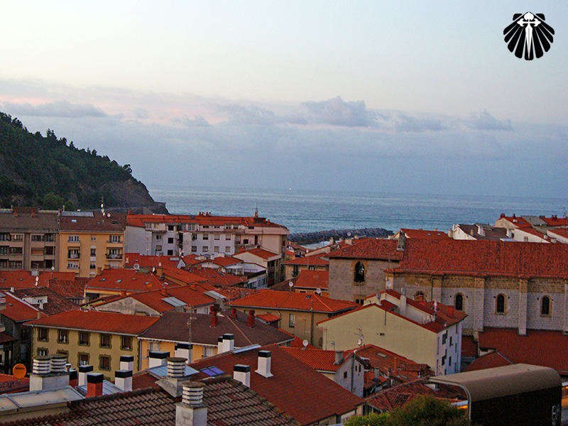 Zumaya se anuncia através da belíssima vista do alto do morro, muitos peregrinos fazem uma pausa para apreciar a cidade e tirar aquela foto da praia de Santiago.
