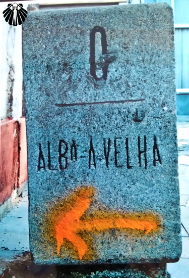 A primeira seta aparece do lado esquerdo da estrada, pintado no muro de uma empresa, mas um pouco a frente, do lado esquerdo da estrada, bem no cruzamento, é possível ver um morrão com o tradicional azulejo com a seta amarela e a vieira, depois é só continuar seguindo as mesmas até Albergaria-a-Velha.