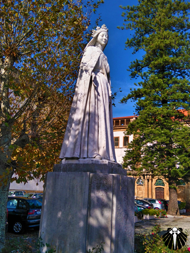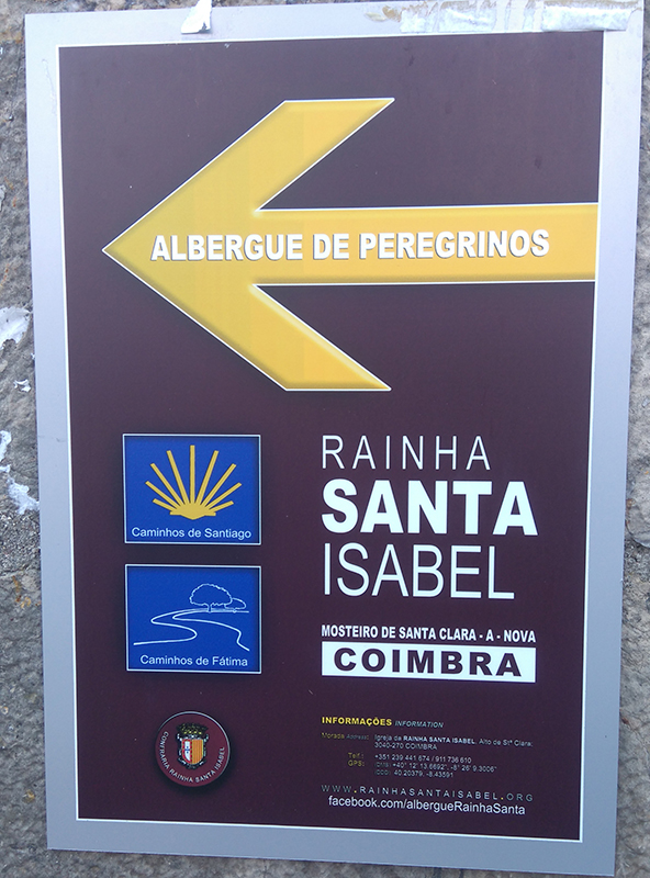 Assim que a ladeira termina e o peregrino já se encontra na entrada do Mosteiro de Santa Clara-a-Nova, onde se abriu recentemente um Albergue de Peregrinos, que funciona a partir das 14hs. Se a chegada for antes da abertura, converse com uma das pessoas que trabalham no atendimento aos visitantes do Mosteiro se é possível deixar a mochila por ali e retornar depois.