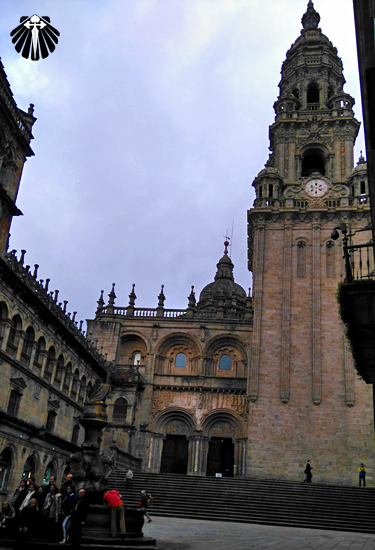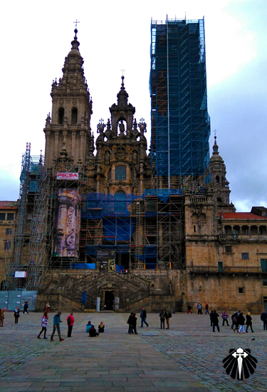 O marco “Zero” está no meio da praça aguardando o encerramento de mais uma peregrinação. É claro que, se pode gritar, chorar, correr, jogar mochila para o alto, pois são essas as demonstrações emotivas mais comuns para os que chegam a frente à Catedral de Santiago de Compostela.