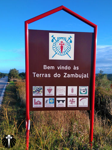 Enquanto isso, e independente da rota que o peregrino escolher, chega-se a Zambujal, pequeno vilarejo que possui o seu charme, com cafeteria, fonte de água potável e uma praça com vários bancos para descanso, não que o peregrino precise, mas pra que a pressa quando se tem bastante tempo para caminhar?!