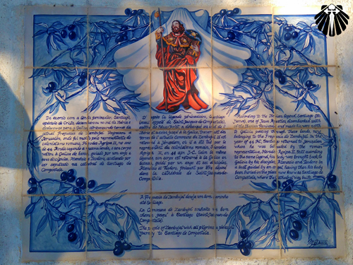 De acordo com as informações escritas em uma pintura em azulejos, diz que “de acordo com peninsular, Santiago apóstolo de Cristo, desembarcou no Sul da Ibéria e deslocou-se para a Galiza, atravessando terras da atual Freguesia de Zambujal”...