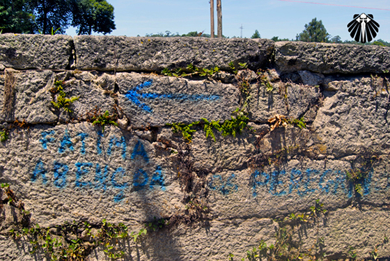Um quilômetro mais à frente, o peregrino deve prestar atenção a sinalização que indica seguir pela esquerda pela Rua dos Cruzeiros, deixando a N-360 para trás, apesar de o trajeto ser mais curto é um pouco mais perigoso pelo movimento de carros.
