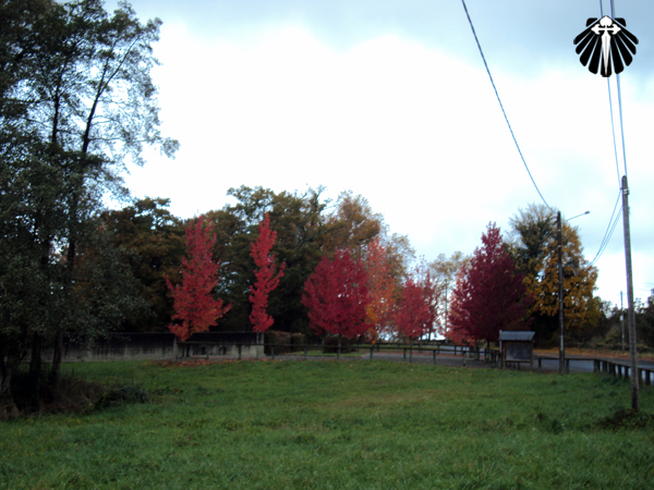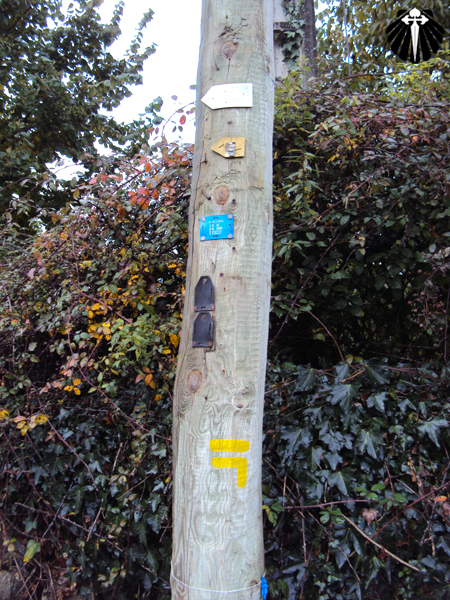 Mais interessante é que a sinalização da trilha local indica a direção do Caminho de Santiago contrária as setas amarelas que seguem para o aeródromo.