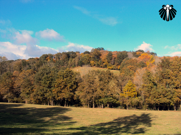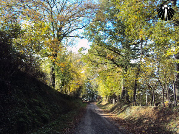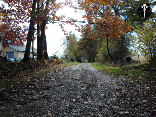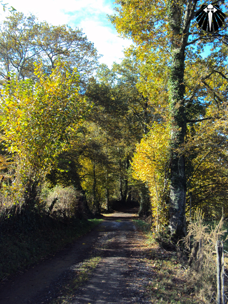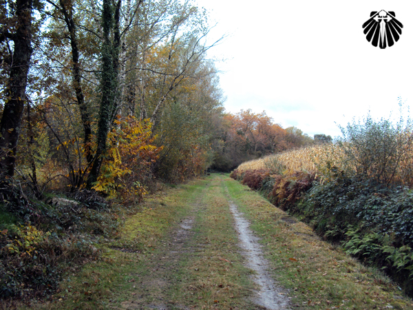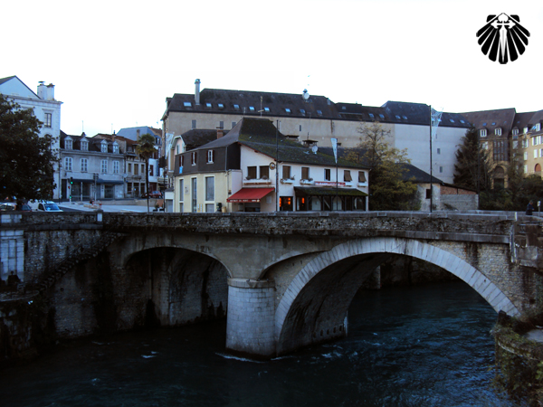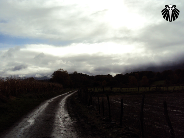 Após o aeródromo, O Caminho de Santiago volta a trilhar estradas de terra batida, com muita sombra do bosque ao redor e o som do Rio d'Ossau passando ao longe.